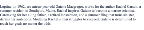 Sheila Myers Posted January 19, 2024 Posted January 19, 2024 Title: Biography of the Sea historical fiction with dual timeline 93k words Story Summary A tale of love's endurance and redemption against the backdrop of an island community in Maine. In the summer of 1962, Galene MacGregor's dreams of going to college to study the sea collide with her responsibility to her father, a retired lobsterman who is going blind. She takes a job as the maid to summer resident and famous author Rachel Carson, who’s working on the final edits of her seminal work, Silent Spring. Inspired by Carson’s struggles in both her personal and professional life, Galene is determined to make it off the island and into college. Unfortunately, a summer fling with James, an outsider from Boston, sabotages her plans. When he entangles her in his family’s dark secrets, she makes a heart-wrenching choice to betray him. An unplanned pregnancy forces her to settle into a marriage of convenience with a high school boyfriend. In the late-1980s, she returns to the island as a respected scientist, and runs into James, forcing her to come terms with her past decisions. Antagonist Plot Points: Ironically, the vast sea surrounding Galene creates a sense of isolation, claustrophobia, and a feeling of entrapment. When she meets a guy ‘from away’, James, she envisions a life in Boston, escape from her family commitments, and her cloistered life. What she doesn’t see is that the dark secrets James family harbors and his sexual allure will entrap her as well. At first James is friendly with Galene out of curiosity, but when she witnesses James's mother driving drunk, creating an accident, his motivations change. He’s told by his father to court Galene, get her on their side, so she won’t testify in a costly civil lawsuit against his mother for a hit and run. As their relationship intensifies, it’s not apparent keeping Galene quiet is James' primary motivation. It only becomes clear when Galene calls the police, to stop James’ mother from driving inebriated with James’ brother in the car. James' mother is arrested and he turns on Galene. They reunite in Boston. He intercepts her on the way to a deposition against his mother. They have sex, and Galene discovers he has a serious girlfriend. A few weeks go by and she discovers she’s pregnant. She never tells James until twenty-five years later when they see each other at a memorial event for Rachel Carson. Comp titles: The Guest Book—Sarah Blake (Maine setting, family saga) The Stars Are Fire—Anita Shreve (Maine setting female protagonist, family saga) CODA the movie—(coming of age, rural community, struggling fishing community, family saga) I understand these are best sellers but in terms of the topic and genre it fits. Lessons in Chemistry (historical women’s fiction and women in science) Bonnie Garmus Where The Crawdads Sing (coming of age, historical women’s fiction, women in science, family saga)—Delia Owens Logline: Logline: In 1962, seventeen-year-old Galene Macgregor, works for the author Rachel Carson, a summer resident in Southport, Maine. Rachel inspires Galene to become a marine scientist. Caretaking for her ailing father, a retired lobsterman, and a summer fling that turns sinister, derails her ambitions. Modeling Rachel’s own struggles to succeed, Galene is determined to reach her goals no matter the odds. Other Matters of Conflict: Set in the summer of 1962 with a dual timeline in the late-1980s on a small island in Maine, The Biography of the Sea is the story of Galene MacGregor, the daughter of a lobsterman who has ambitions to escape her small town and go to college, but is thwarted by family responsibilities. Her father is going blind and her brother, Sam, tries to keep the family financially stable but is flailing in the lobster business. To help with finances, Sam recruits Galene to be his sternman on the lobster boat. A job she hates. Galene’s best friend, Sasha, who has a crush on Sam, proposes a job switch. Galene becomes the maid for famous author Rachel Carson, who summers on the island while Sasha works with Sam. A tumultuous relationship develops between Sasha and Sam, with Galene in the middle. Galene meets a boy named James from Boston who is summering on the island with his family. To impress him, she lies about her role as Carson’s maid, telling him instead she’s doing research for Carson. She grapples with this lie while introducing him to the wonders of the sea, mimicking Carson’s explorations so vividly described in her book The Edge of the Sea. Galene’s pretense continues as she falls for James. But he has his own secrets to hide. His mother is an alcoholic who a year earlier, at their summer home on Cape Cod, ran over a little girl, crippling her. James’ family escaped to Maine to avoid public scrutiny and a lawsuit. While working for Rachel Carson, Galene is privy to aspects of Rachel’s personal life that Carson keeps private: her deep affection for her friend Dorothy Freeman, a married neighbor, and her struggle to fight cancer. When Carson's work, Silent Spring, sparks a national controversy, Galene shields her from a nosy reporter who comes to the island seeking to interview Rachel over what he calls, ‘the chaos’ she’s created. Galene's life takes a dramatic turn when she witnesses a car accident involving James' mother, prompting a Boston lawyer to contact her for her testimony. Galene and James become romantically involved and she gets pregnant, putting her in an untenable position: testify against James' family or protect their secrets. Galene discovers James has another girlfriend, and was using her to stay quiet about his mother’s accident. Faced with a choice, Galene testifies against James’ family and they lose a lot of money in a lawsuit. She marries a local boy, Henry, a high school sweetheart; letting him think it’s his baby. As a wedding gift, Henry’s father buys James’